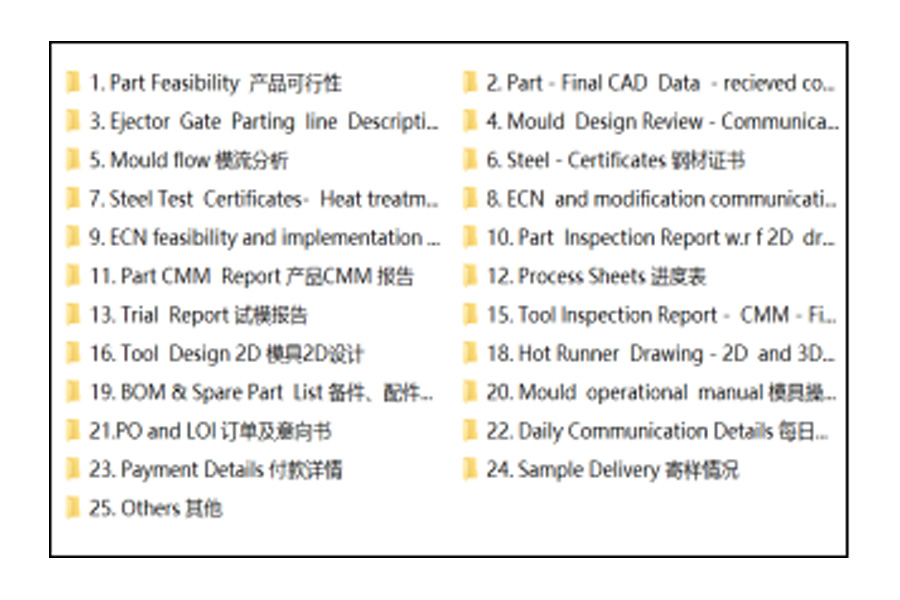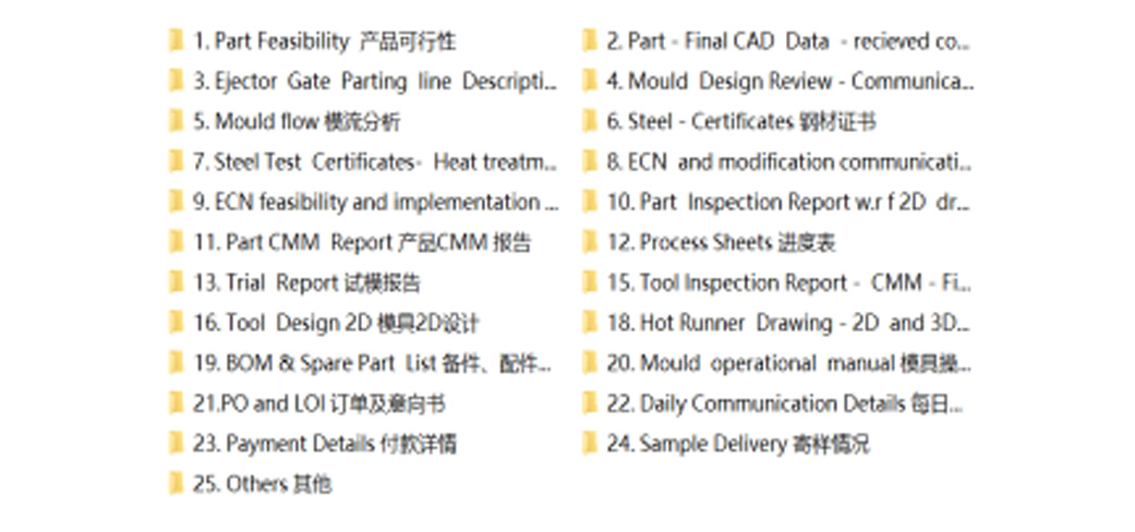 يعد التوثيق الواضح جزءًا أساسيًا من إدارة مشروعنا. بالنسبة لكل مشروع، تقوم شركة Renxin Mould بإنشاء أرشيف رقمي كامل يغطي القرارات الرئيسية والتحقق الفني وحالة الجودة. تدعم هذه التقارير الموحدة التواصل الشفاف مع العملاء وتضمن التوافق المتسق بشأن أهداف المشروع ومخاطره ونتائجه.