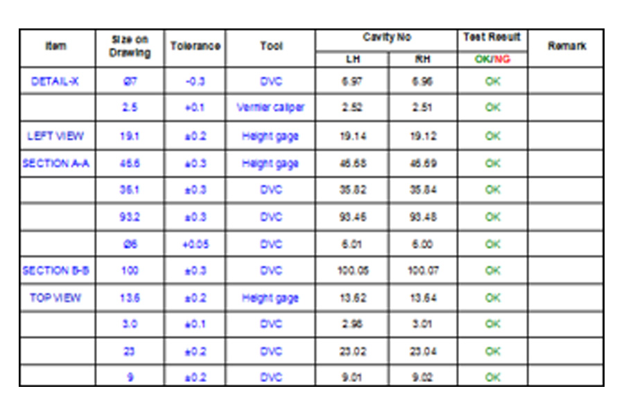 باستخدام آلات قياس الإحداثيات عالية الدقة (CMM)، نقوم بإجراء فحص ومقارنة على مستوى الميكرون لمكونات القالب المهمة والمنتجات النهائية. ويضمن هذا الامتثال الكامل لرسومات التصميم من حيث الأبعاد الرئيسية والأسطح المعقدة ودقة تحديد المواقع، مما يضمن دقة ملاءمة القالب وجودة المنتج المتسقة عند المصدر.